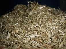 orientierten Bastfasern und das untere die daraus gewonnenen Schäben (hier Flachsschäben).
